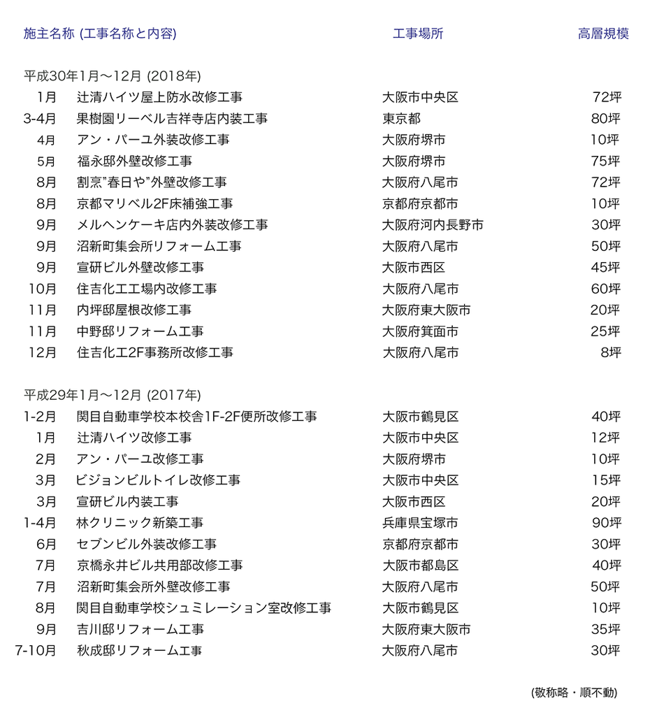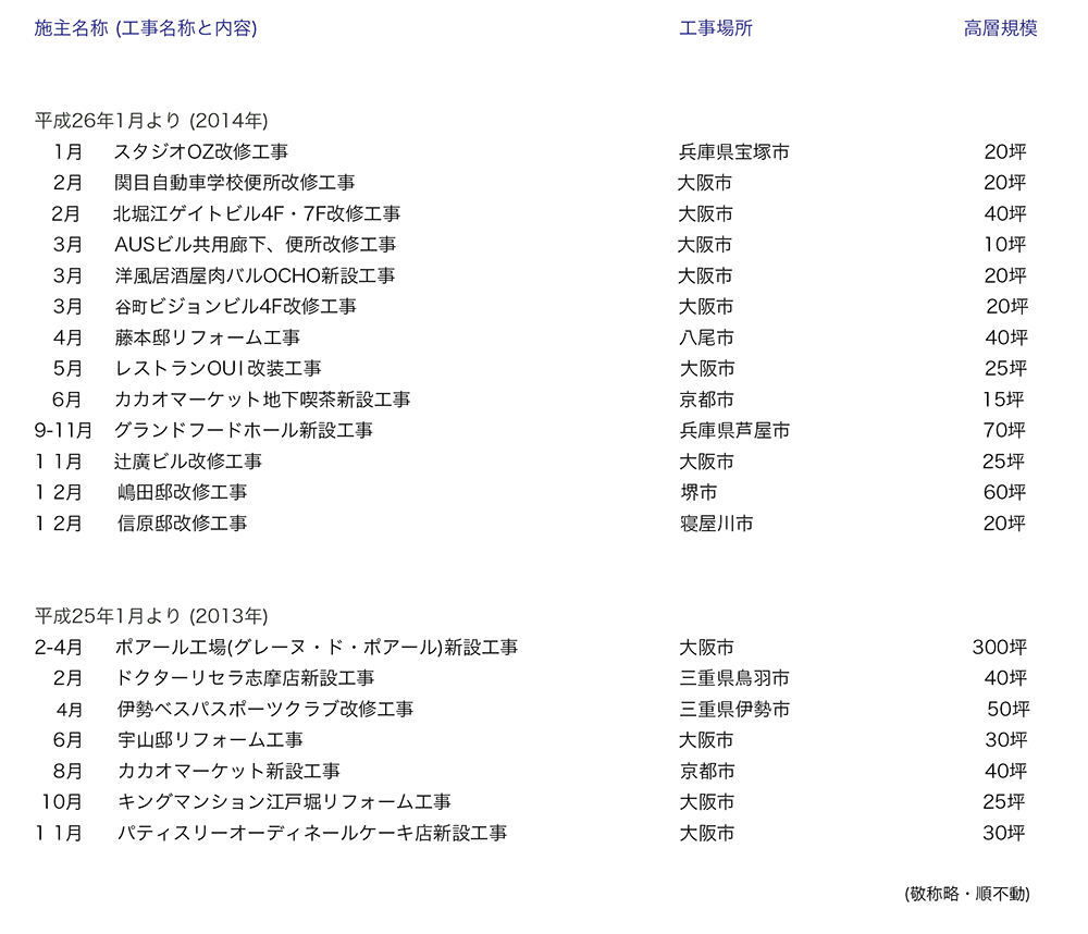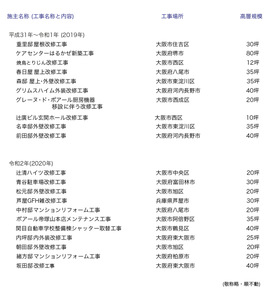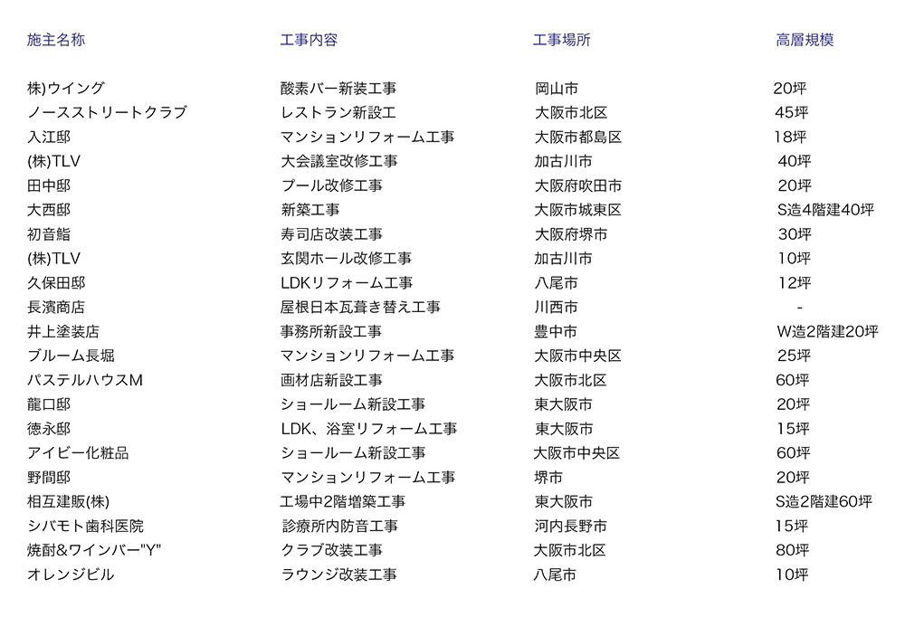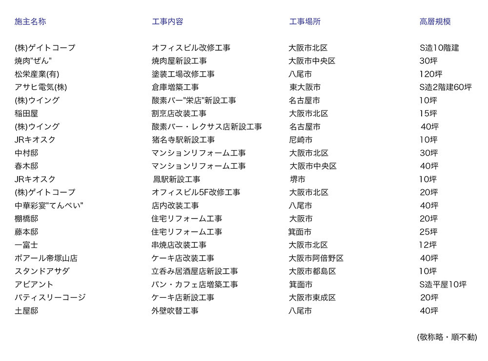実績2021〜2023年 実績2019〜2020年 実績2017〜2018年 実績2015〜2016年 実績2013〜2014年 実績2011〜2012年 実績2009〜2010年 実績2007〜2008年 実績2005〜2006年 実績2003〜2004年 ページトップへ TOP 会社案内 竣工例-1 竣工例-2 実 績 リンク